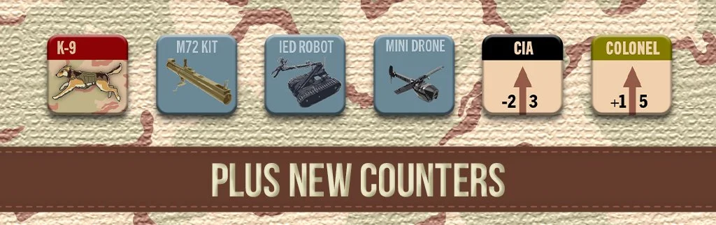 Game can be played Solo, Co-Operative, Two-Player Head-to-Head, and Three Player. Use cards to dictate the insurgents reactions and how the danger on the ground changes at a moments notice.